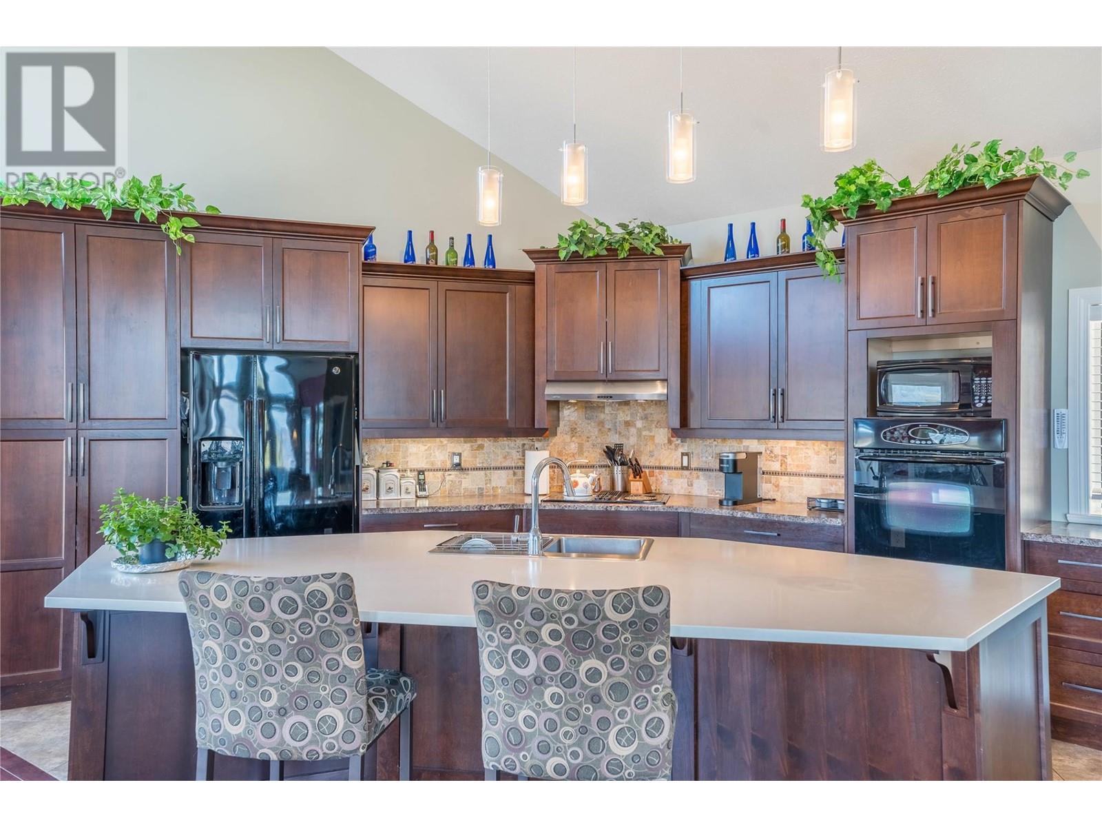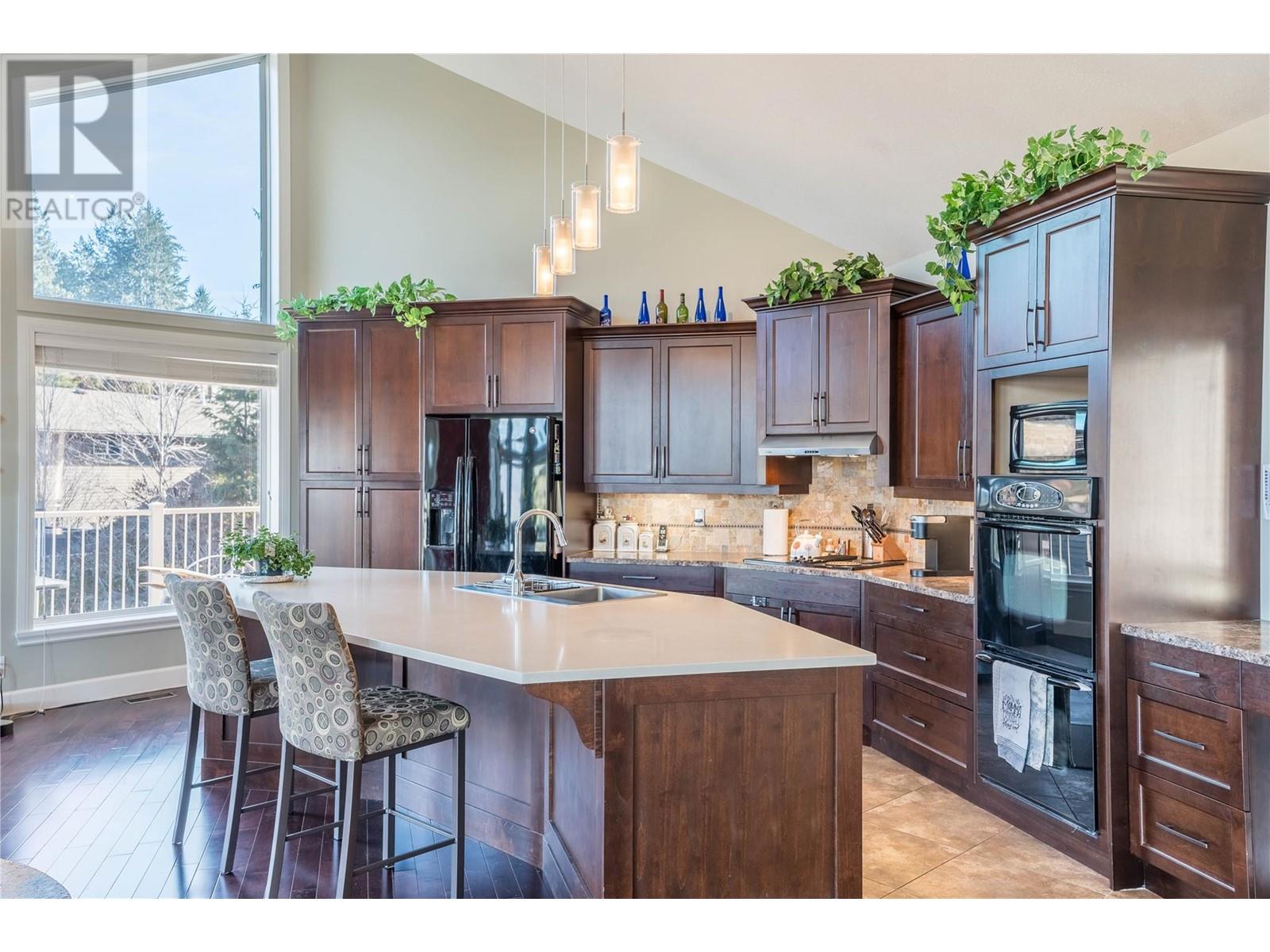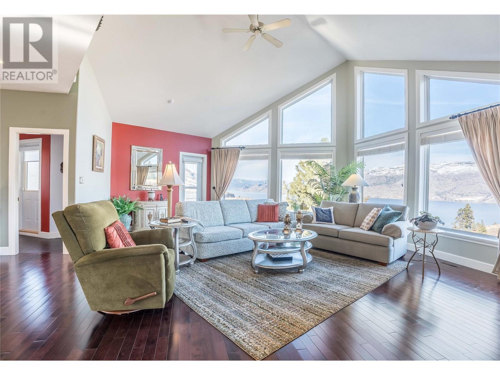 This custom-built home captures breathtaking lake and mountain views and is offered at an incredible value — $345,000 below assessed. Located in prestigious Sumac Ridge Estates, it blends timeless design with modern updates, including a new high-efficiency furnace and central AC. A dramatic curved staircase leads to a soaring Great Room with walls of windows, while the open kitchen, dining, and multiple living spaces make entertaining effortless. With four bedrooms, a family room, rec room, and three expansive decks, there’s space for every lifestyle. Nestled beside vineyards and a golf course, this residence delivers privacy, panoramic vistas, and a rare opportunity for luxury living at unmatched value. (id:41613)